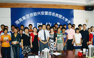 2008年8月海亮的助學(xué)愛心傳遞到內(nèi)蒙古興安盟,資助當(dāng)?shù)?00余名優(yōu)秀貧困大學(xué)生上學(xué)。